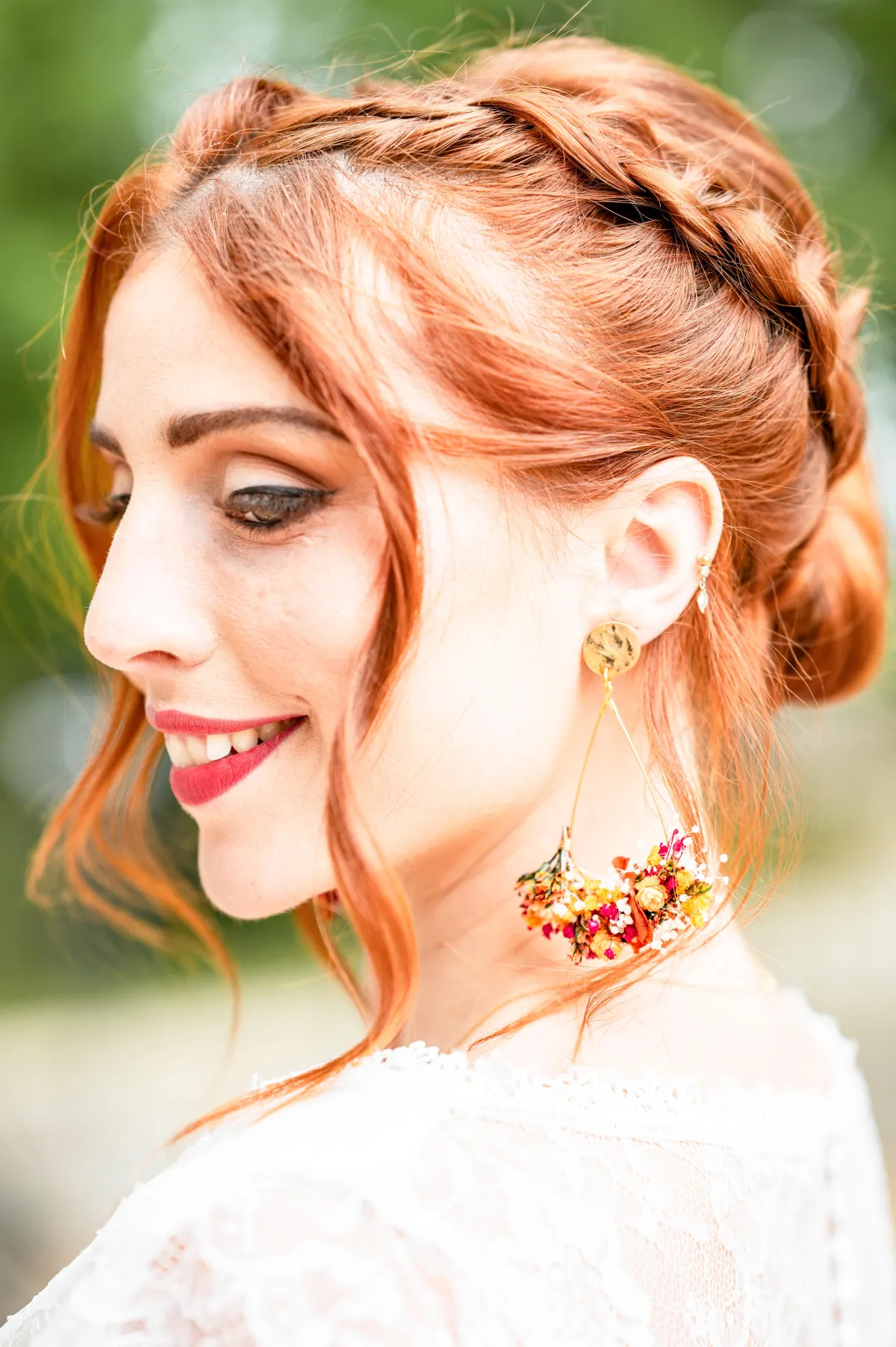 Delphine m a concocté une magnifique paire de boucles d'oreilles , mes bracelets pour les témoins et la boutonnière de mon conjoint ainsi que quelques petites décorations.