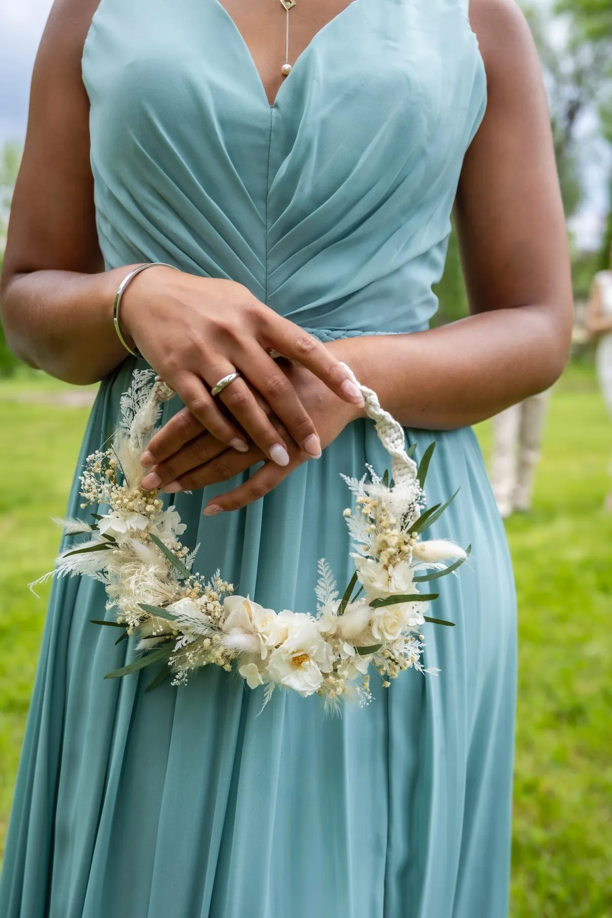 À travers la Collection Mariage, j’accompagne les futurs mariés dans la création de leur univers floral : décorations durables, mais aussi accessoires pour magnifier la mariée et ses proches — couronnes, bracelets, boutonnières, peignes… Chaque détail compte.