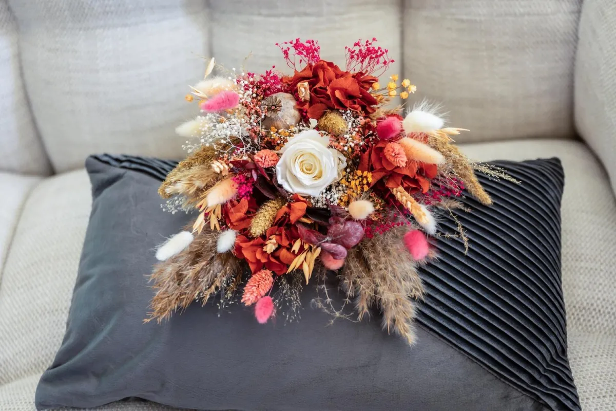 Depuis mon atelier à Luxeuil-les-Bains, en Franche-Comté, je donne vie chaque jour à des créations artisanales à base de fleurs séchées et stabilisées. Des pièces uniques, faites à la main, pensées pour sublimer vos moments les plus précieux.